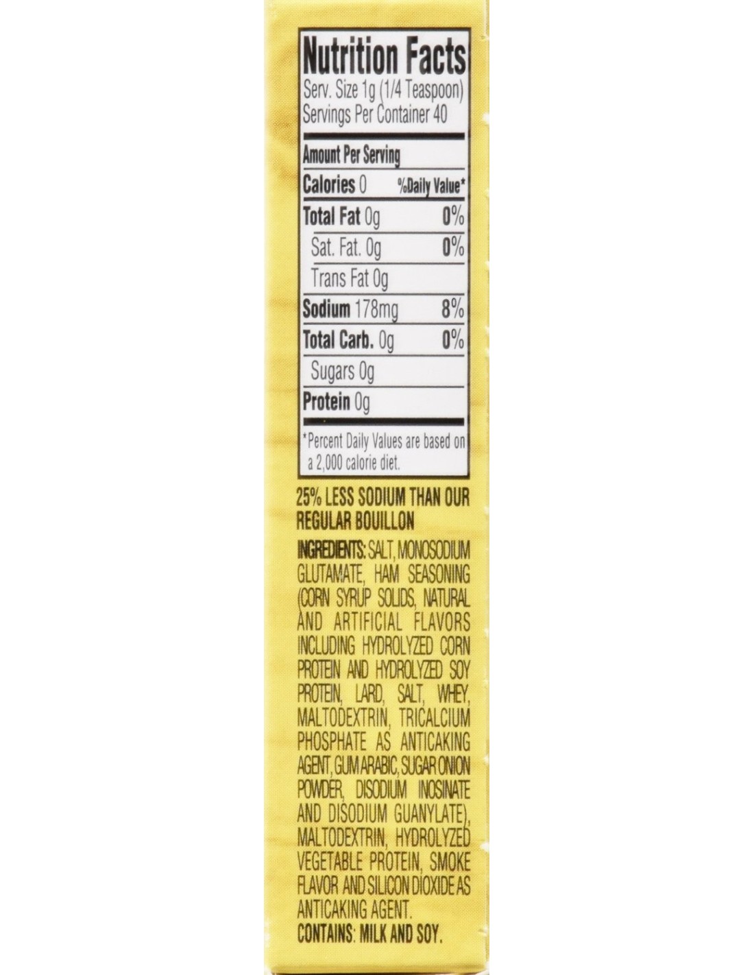 When your favorite recipe calls for broth or bouillon, reach for Goya’s easy-to-use, super-flavorful Ham Flavored Concentrate, perfect for a low sodium diet. Goya Ham Flavored Concentrate comes as a powder and is excellent as a base for soups; on chicken, meat and rice dishes, and even to make savory gravies, now with 25% less sodium than regular GOYA Ham Concentrate. Great flavor, at your fingertips! GOYA Reduced Sodium Ham Concentrate adds the right hint of smokiness to soups and stews and can also be used as a seasoning for fresh or canned vegetables. With Goya Reduced Sodium Ham Flavored Concentrate Seasoning Packets, the flavor of just one packet equals the flavor of 1/4 pound of smoked country ham in your cooking.