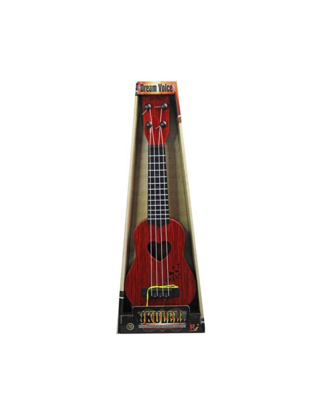 You'll love to create island-style music with this fun Toy Ukulele with an open heart-shaped center. This tiny guitar is ideal for the beginner learning to play or a pro looking for an instrument to practice on. Great for teachers to use for students to explore musical creativity. The realistic four-string ukulele has a wood-look body and finishes, plastic strings, and turnable tuning knobs. Great to have on during luaus and other celebrations. Comes packaged in an open window individual box measuring approximately 17.25"x2.15"x6.75".